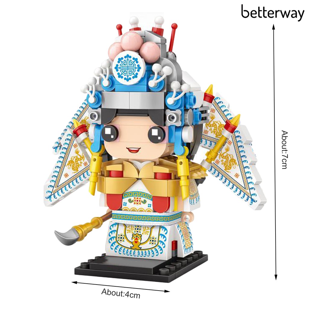 Description: Designed with cute appearance, the building block toy looks lovely and easily attracts children's attention. Featuring Peking Opera figure shape and bright colors, the building block toy helps to exercise children's color recognition ability and hands-on ability. The building blocks toy is made of premium ABS material, which is non-toxic and environmentally friendly. The height of the assembled model toy is 7cm, the length and width of the tray is about 4cm. It is suitable for kids who are more than 6 years old.