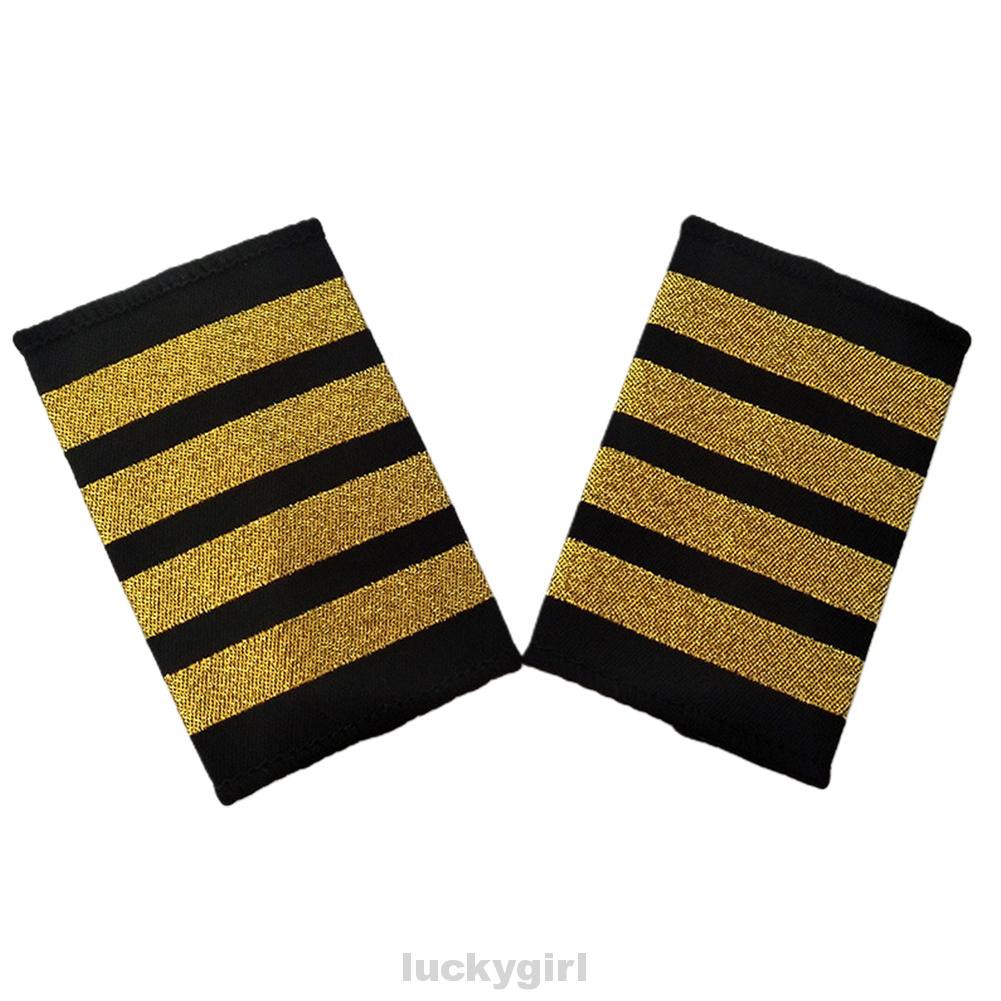 Description: 1. 1 Pair professional pilots uniform epaulettes. 2. In black fabric, with 4 gold stripes for good look. 3. Rectangle shoulder badge, the stripes are reinforced. 4. Made of polyester materials, durable and nice seam. 5. A great gift to airmen, suitable for being sewed on all kinds of pilot shirts. Specifications: Color: black + gold Material: polyester Feature: 4 stripes Shape: rectangle Badges: sew-on Size(approx.): (length X width) 8 X 5cm Package Included: 1 Pair * Pilots epaulettes Note: 1. Due to the light and screen difference, the item's color may be slightly different from the pictures. 2. Please allow 0.5-2cm differences due to manual measurement. #Pilots #Epaulettes #1 #Pair #Professional #Clothing #Decor #Uniform #Accessory #Gift #DIY #Craft #Security #Cosplay