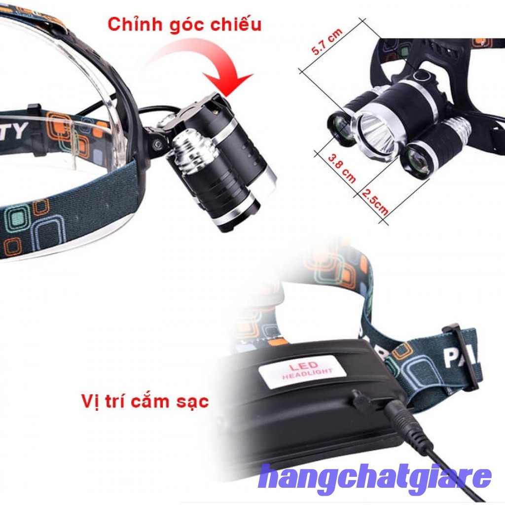 Giới thiệu Loại 1 - Đèn Pin Đội Đầu Headlight 3 Bóng - Trắng, Đèn Pin T6 Siêu Sáng - Tặng Kèm Sạc & 2 Pin.