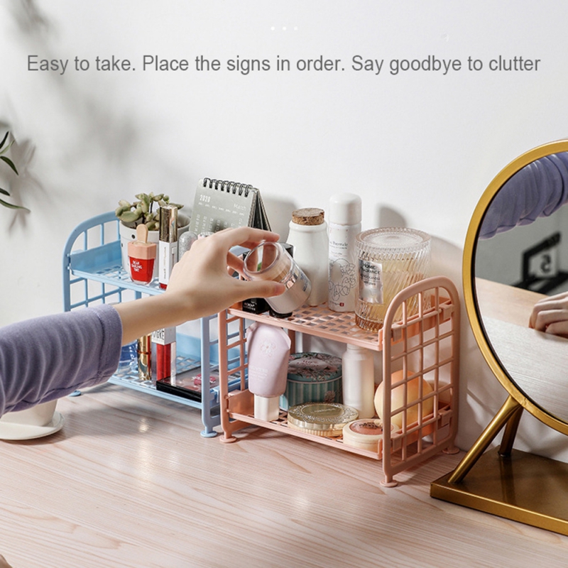 Features: - Double Large Capacity Design. Foldable stacked desktop storage racks. - Good carrying capacity and orderly storage. - hollow design, easy drainage, clean hygiene. - Movable, easy to clean, easy to store. - Multi-scene applications can be used in living room, study, bathroom, kitchen, etc.