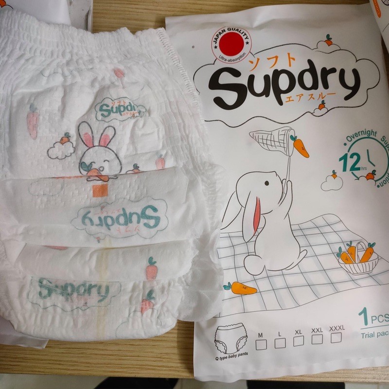 BẠN ĐANG MUỐN TÌM 1 DÒNG BỈM CHẤT LƯỢNG NHẬT – GIÁ CẢ VIỆT NAM?👑👑 Supdry ra đời mang đầy đủ tiêu chí trên, Supdry được sản xuất theo công nghệ tiên tiến của Nhật. Vì thế chất lượng sản phẩm luôn đảo bảo như những dòng cao cấp trên thị trường. Xin điểm qua 1 số ưu điểm của dòng bỉm này như sau: - Khả năng thoáng khi tốt với hàng ngàn lỗ thông hơi trên bề mặt. Khi bé mặc sẽ cảm giác dễ chịu, không bức bí. - Khả năng thấm hút tốt và chống thấm ngược hiệu quả, khiến da bé luôn khô ráo suốt cả ngày dài. - Chống tràn tốt với lớp chống tràn kép. Nên không tràn qua đêm. Đây là 1 trong những ưu điểm nổi bật của Supdry. - Khả năng kháng nấm, vi khuẩn gây mùi, vi khuẩn gây bệnh hiệu quả - Có vạch báo thay tã tiện dụng, giúp báo hiệu chính xác thời gian cần thay tã. - Không thể bỏ qua 1 ưu điểm đáng điểm 10 của Supdry, đó là có dây cuộn bỉm khi sử dụng. 👉👉Về giá cả chỉ 270k/ bịch. Nghe đã thấy hàng CHẤT LƯỢNG NHẬT – GIÁ CẢ VIỆT NAM rồi đây. Hãy nhanh tay trải nghiệm thôi nào. Size bỉm quần Supdry - M64 miếng (6-11kg) - L58 miếng (9-14kg) - XL52 miếng (12>17kg) - XXL50 miếng (> 15kg) Hãy thử trải nghiệm siêu phẩm đỉnh cao này nhé các mom ơi