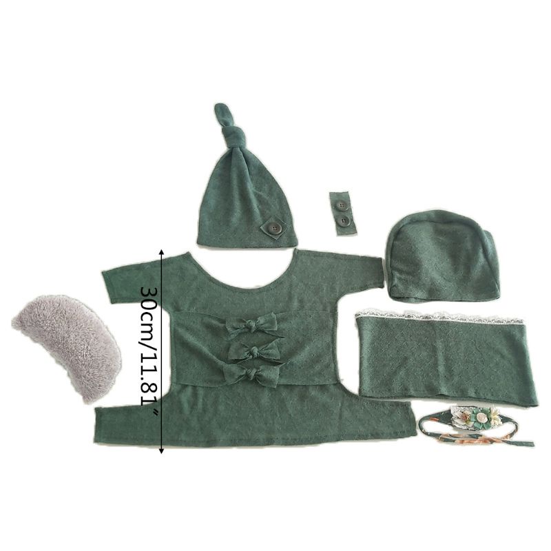 Giới thiệu 1 Set Gồm Áo Quấn Thắt Nơ Kèm Mũ Và Gối Đội Đầu Làm Đạo Cụ Chụp Ảnh Cho Bé Sơ Sinh