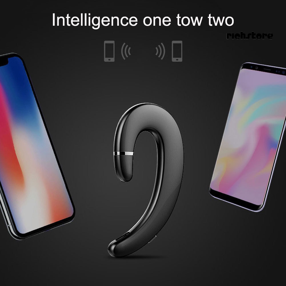 Item Name: Bluetooth Earphones Material: ABS Quantity: 1Pc Channel: Mono Channel Usage: Ear-hanging Type Sound Type: One-sided Handsfree Bluetooth Protocol: 4.1 Transmission Range: 10m Battery Capacity: 75mAh Functions: Power Display, Call Function, Music Support, NFC Function Driver: 15mm Impedance: 32Ω Bluetooth Version: Bluetooth V4.1 + EDR Bluetooth Usage Band: 2.4 GHz Power Level: CLASS II Output Power: 30mW Bluetooth Distance: Barrier-free 10 meters Frequency Response: 20-20000Hz Working Voltage Range: 3.0V-4.2V Mitoid Sensitivity: -42dB Features: Noise Reduction, Bluetooth, Music Listening, Ear-hook, Bone Conduction Technology Size: 7cm x 5cm x 1cm/2.76" x 1.97" x 0.39" (Approx.)