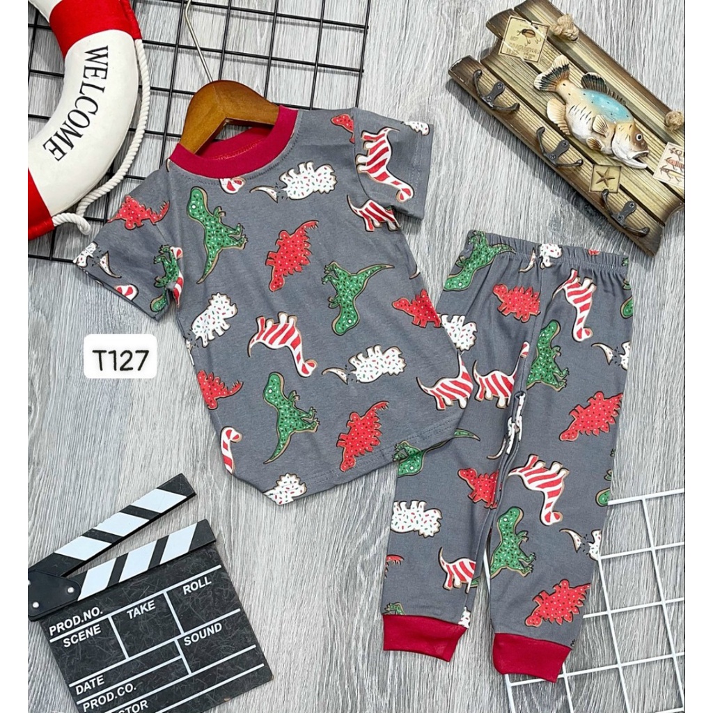 Thời trang trẻ em & trẻ sơ sinh > Quần áo bé trai > Com lê & đồ bộ || [10 22kg] Bộ bé trai tay ngắn quần dài hình khủng long hình ô tô hàng xuất dư xịn chất đẹp T127