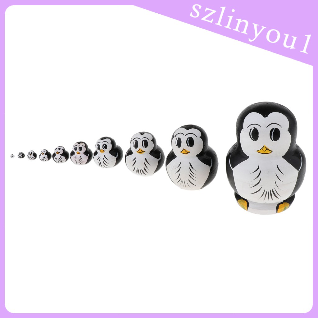 Description: 100% Brand new, high quality and excellent workmanship; Great Christmas Festival Gift and Christmas Decorations. Hand Painted Cartoon Penguins Russian Nesting Dolls, Wooden Babushka Matryoshka Dolls Toy. Wood made traditional matryoshka dolls, the perfect material and handmade craftwork ensure dolls more durable. It consists of 10 dolls, all smaller dolls are entering into a bigger one, even the smallest one is delicated. Material: Wooden