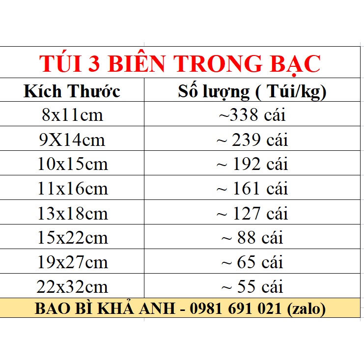 📚📚 TÚI ZIP 3 BIÊN Công dụng của Túi 3 biên màu: – Bảo quản các loại nông sản khô như gạo, các loại ngũ cốc. – Bảo quản kem dưỡng da,mỹ phẩm,chất lỏng,bột. – Bảo quản các loại bánh kẹo sau khi sử dụng mà vẫn giữ lại chất lượng tốt nhất. – Bảo quản gia vị, bột nêm. đóng gói xuất khẩu. – Bảo quản các đồ vật khỏi bị ăn mòn. Cách sử dụng: sau khi bỏ sản phẩm vào, sử dụng máy ép nhiệt để hàn miệng túi. Vật liệu mới, sử dụng không độc hại và thân thiện với môi trường.
