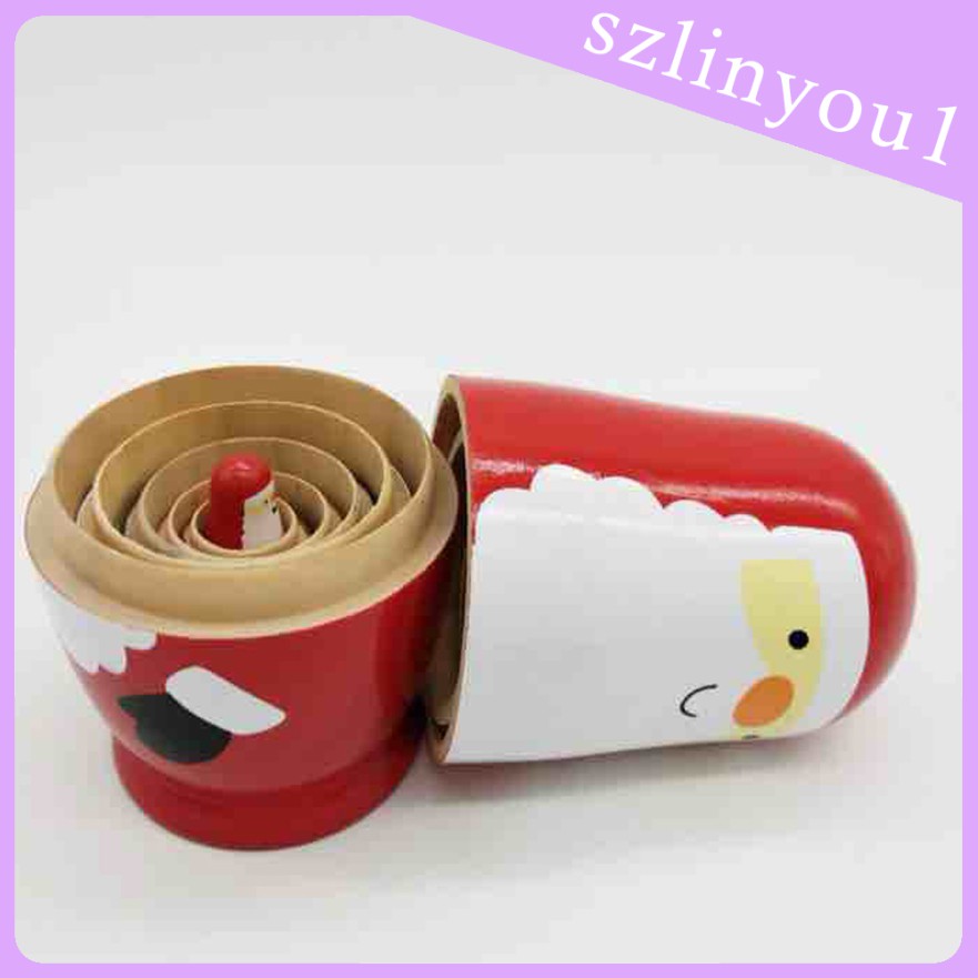 2 Set Hand Painted Christmas Santa Claus Wooden Russian Nesting Dolls
