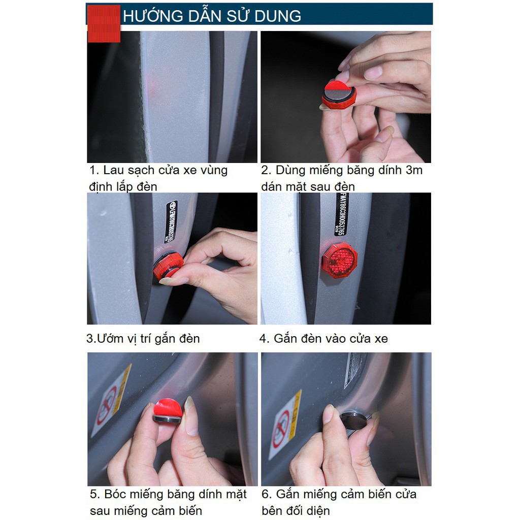 ⚠ Bạn có biết rằng chỉ một chi tiết nhỏ này có thể giảm hơn 90% vụ tai nạn do mở cửa gây ra. ĐÈN CẢNH BÁO NGUY HIỂM, VA CHẠM KHI MỞ CỬA Bộ sản phẩm gồm 2 đèn+2 nam châm+ miếng băng dính 2 mặt 3M. 🔹Phát sáng, chớp tắt liên tục khi cửa mở để cảnh báo từ xa với người tham gia giao thông phía sau. 🔹Giảm thiểu rủi ro tai nạn, va chạm khi mở cửa xe ngoài đường. 🔹Đơn giản, dễ lắp chỉ với băng dính 3M chuyên dụng đi kèm trong hộp sản phẩm, không cần cấp điện cho sản phẩm vì đã tích hợp pin. KHÔNG khoan, KHÔNG vít, KHÔNG dây điện. 🔹Cảm ứng nam châm giúp tắt đèn khi đóng cửa xe nên rất tiết kiệm pin. 🔹Sử dụng pin tròn phổ biến, dễ thay thế khi hết pin. 🔹Kích thước đường kính đèn 28mm và dày 8 mm nên rất nhỏ gọn và thẩm mỹ 🔹Đèn led đỏ có tác dụng cảnh báo tuyệt vời từ xa ~100m, đèn led thiết kế chống nước rửa xe, đi trời mưa thoải mái. 🔹Màu đèn: xanh, đỏ và nhiều màu
