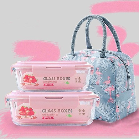 Giới thiệu Bộ 2 Hộp Cơm Văn Phòng Thủy Tinh Chịu Nhiệt, Chia 2 Ngăn 1000ml và 1 Ngăn 680ml Tiện Dụng Kèm Túi giữ nhiệt