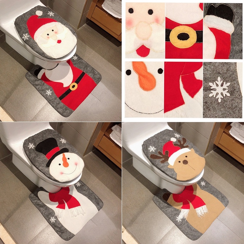 Nhà Cửa & Đời Sống > Đồ dùng phòng tắm > Thiết bị nhà tắm và nhà vệ sinh || Bộ 2 Thảm Lót Bồn Cầu + Vỏ Bọc Nắp Bồn Cầu Họa Tiết Giáng Sinh