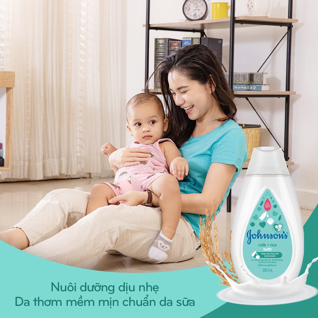 Mẹ & Bé > Đồ dùng phòng tắm & Chăm sóc cơ thể bé > Sản phẩm tắm & gội cho bé || 200ml-Sữa tắm gội Johnson's Milk + Rice tinh chất sữa gạo
