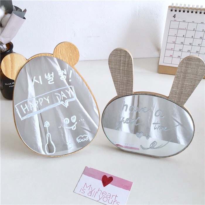 Nhà Cửa & Đời Sống > Đồ dùng phòng tắm > Gương || <24h Lô hàng> W&G Gương soi để bàn gương để bàn gỗ họa tiết chuột thỏ xinh và chắc chắn