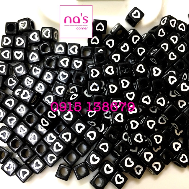 25gr hạt nhựa vuông trái tim trắng / đen xâu vòng