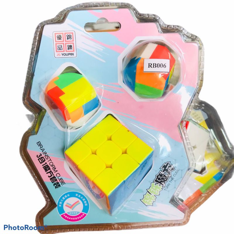 3 BỘ VỚI CÁC MẪU KHÁC NHAU ĐỂ LỰA CHỌN: - Mẫu 1 (RB005): + 1 Rubik 2x2x2 xoay trơn, kích thước 50x50mm + 1 Rubik 3x3x3 cỡ nhỏ, kích thước 35x35mm + 1 móc khóa (mô hình) rubik hình cầu (đèn lồng) - Mẫu 2 (RB006): + 1 Rubik 3x3x3 xoay trơn, kích thước 55x55mm + 1 móc khóa (mô hình) rubik hình trụ + 1 móc khóa (mô hình) rubik hình lập phương bo góc - Mẫu 3 (RB007): + 1 Rubik 3x3x3 xoay trơn, kích thước 55x55mm + 1 Rubik 2x2x2 xoay trơn, kích thước 50x50mm + 1 móc khóa (mô hình) rubik hình cầu (đèn lồng)
