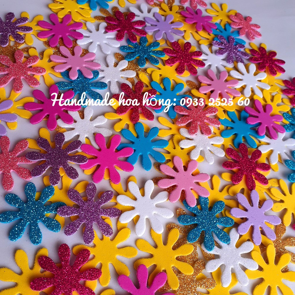 Hoa cúc dập sẵn từ giấy xốp kim tuyến_ Phụ kiện lý tưởng làm DIY, sổ tay, trang trí nhà, trang trí phòng ngủ, các loại thiệp valentine, scrapbook, planner tập sổ giấy bookmark, bao lì xì, thủ công mầm non cho các bé,….. Món quà độc đáo, sinh động và thú vị nhất, để trao gửi yêu thương đến bạn gái, bạn trai, người yêu, người phụ nữ bạn yêu quý.....nhân ngày valentine, 8/3, 20/10, 20/11, tết, sinh nhật hoặc kỷ niệm nào đó một cách ý nghĩa và trọn vẹn nhất. Màu sắc: nhiều màu ( như hình ). Kích thước: ~ 3.8cm Đóng gói: 30 hoa/ túi.
