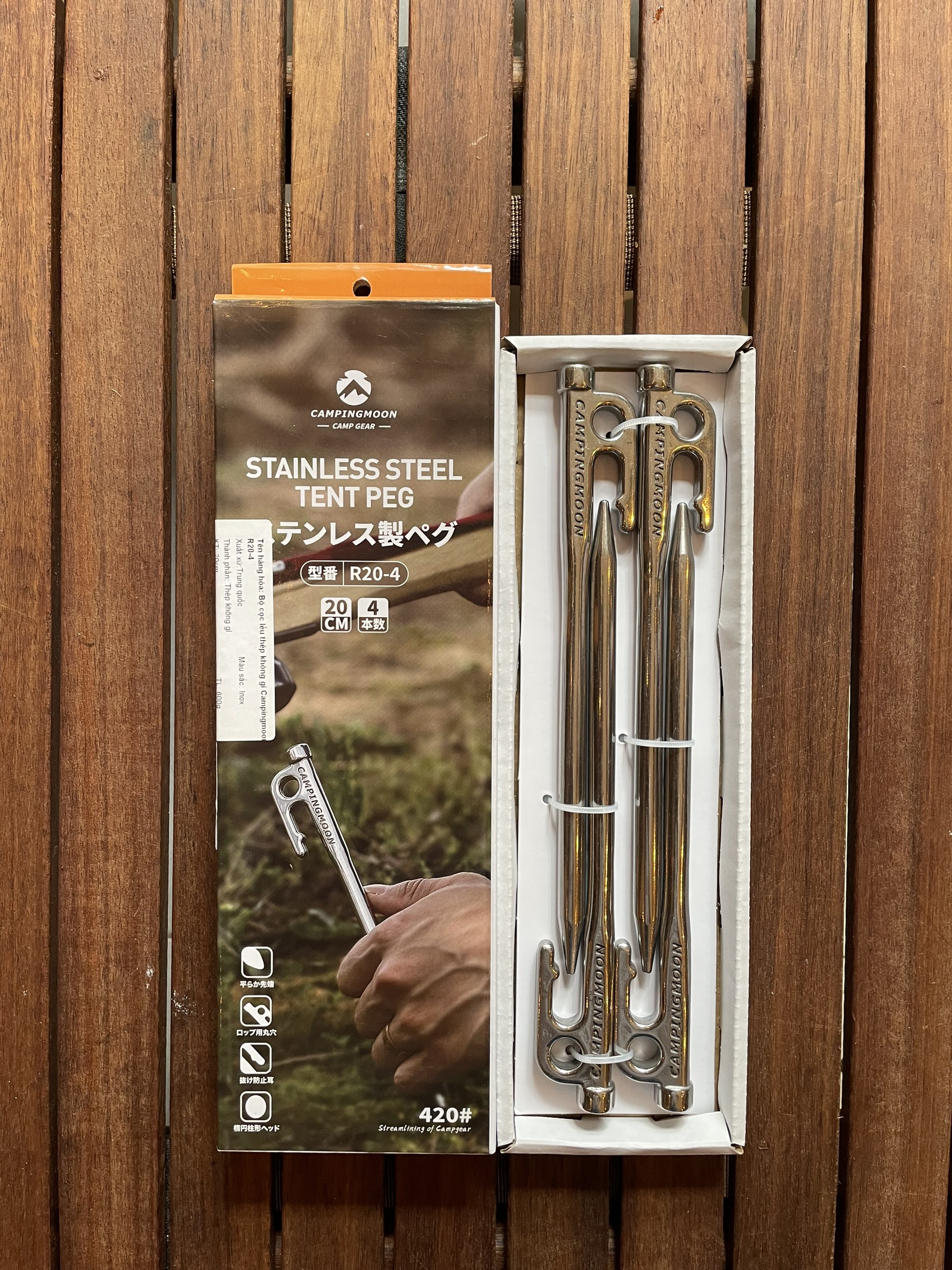 Lỗ tròn trên mỗi cọc được thiết kế sao cho có thể búa được đóng chính xác xuống. Dây cũng có thể được gắn vào.