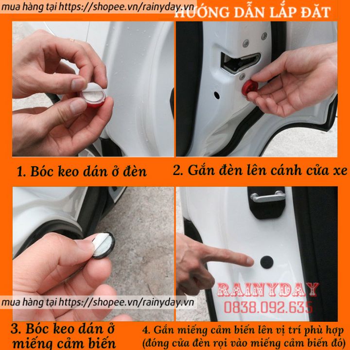 Giới thiệu Bộ 4 đèn cảnh báo mở cửa ô tô tự động, đèn led cảnh báo nhấp nháy khi mở cửa xe hơi ô tô