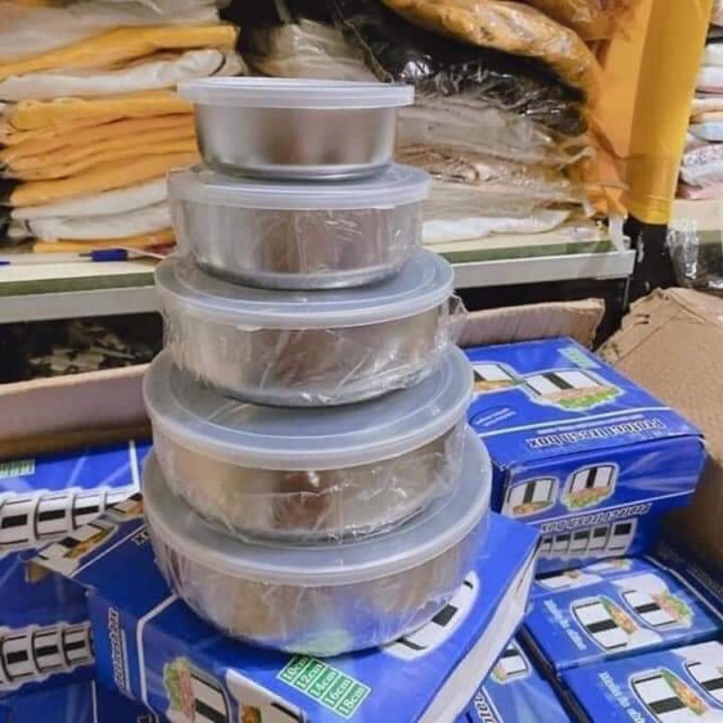 Bộ 5 bát inox cao cấp có nắp đậy với thiết kế thông minh với bát được làm bằng chất liệu inox không rỉ đặc biệt an toàn đẹp sáng bóng.