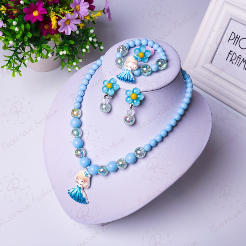Thời Trang Trẻ Em > Phụ kiện > Trang sức || Bộ 5 vòng tay + khuyên tai + dây chuyền + nhẫn kiểu công chúa Elsa cho bé gái
