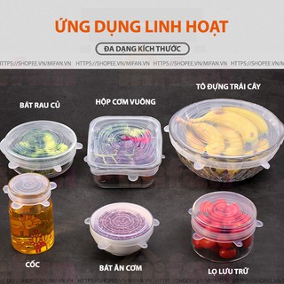 Giặt giũ & Chăm sóc nhà cửa > Túi, màng bọc thực phẩm > Túi đựng thực phẩm || Bộ 6 Miếng Silicone Bọc Thực Phẩm - Nắp đậy màng Silicon bảo quản thức ăn - HÀNG LOẠI 1