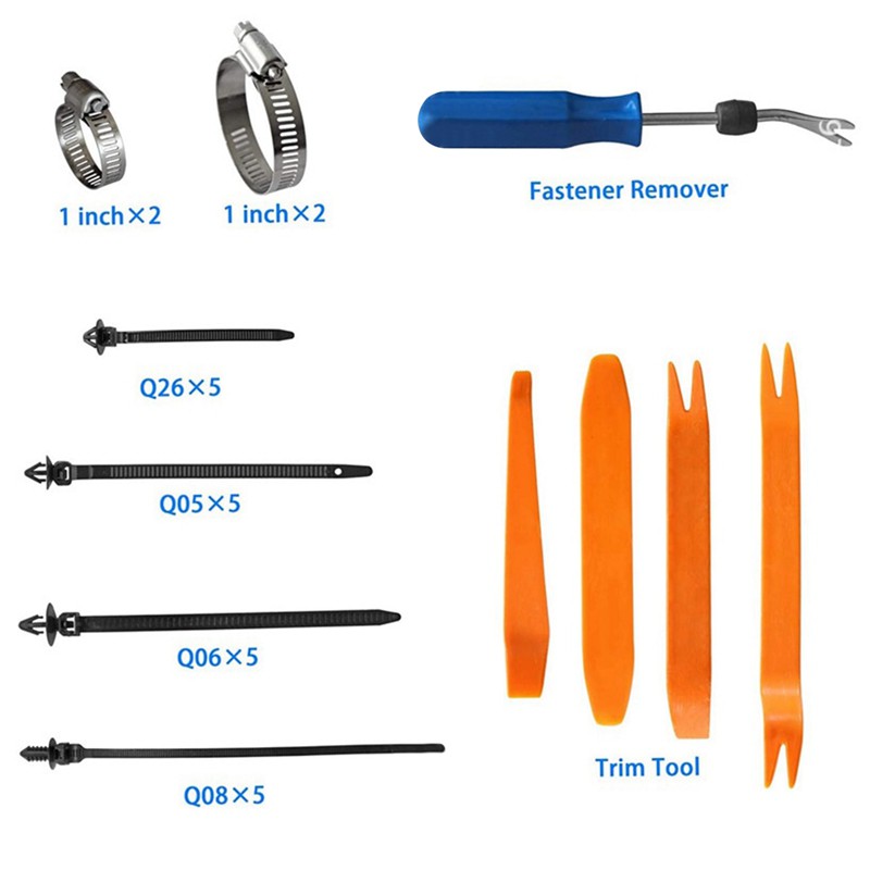 Package Contents: 620 x Fastener Clips 4 x blue screwdriver 4 x tilt shift 4 x cable ties 2 x hose clampsOnly the above package content, other products are not included. Note: Light shooting and different displays may cause the color of the item in the picture a little different from the real thing. The measurement allowed error is +/- 1-3cm.