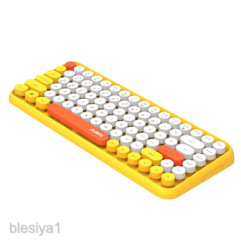 Description: Retro typewriter round key cap design, elegant fashion, comfortable and quiet. Compact 84 key layout, compact and portable. System support: for Windows /IOS / Android. Bluetooth version 3.0, fast connection, responsive, stable signal. Intelligent power saving, no key operation for more than 15 minutes will automatically sleep in standby. Fast operation such as play, pause, volume adjustment, etc. with Fn+ multimedia composite button. Specification: Material: ABS Plastic Color: Yellow / Gray (optional) Number of buttons: 84 keys Working voltage: 3V Maximum current: 8mA. Bluetooth Version 3.0 Transmission distance: 10meters Power Supply: 2 x AAA/7# Battery Working Time: 1 week (Use it continuously for 8 hours a day) Standby Time: 1 month Size: Approx. 320x137x35mm/12.59x5.39x1.38inch Package Includes: 1 Piece Wireless Bluetooth Keyboard Note: Please allow 1-3mm error due to hand test. The color may have different as the different display. THANK YOU FOR SHOPPING WITH US! Have a nice day!