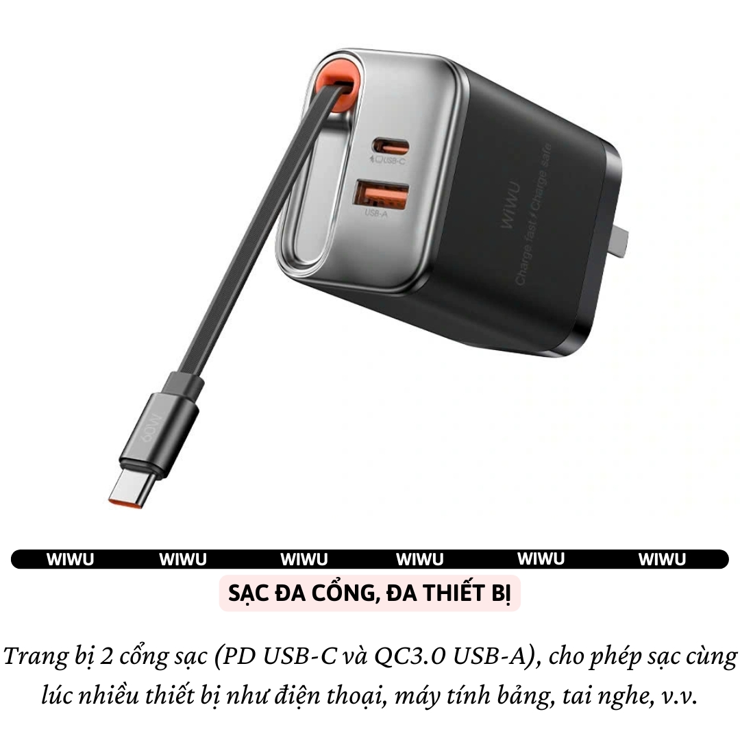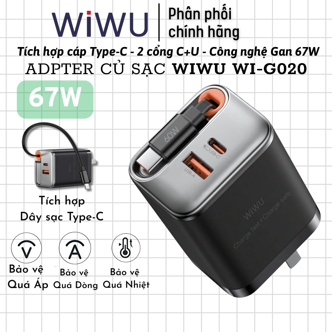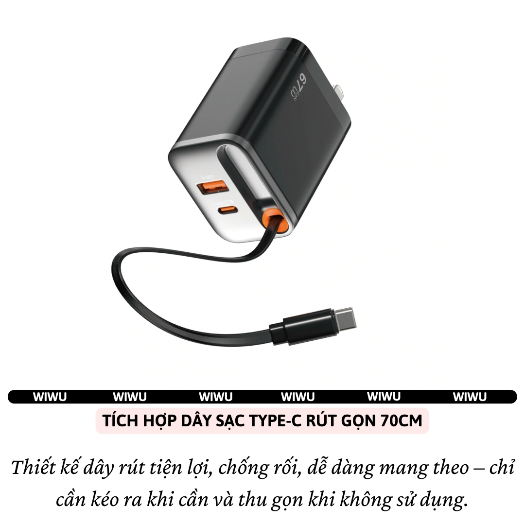 | Model | Adapter cóc củ sạc nhanh 67W PD USB C + USB-A 3.0 kèm dây sạc Type-C PPS chống cháy hiệu WIWU Helix |