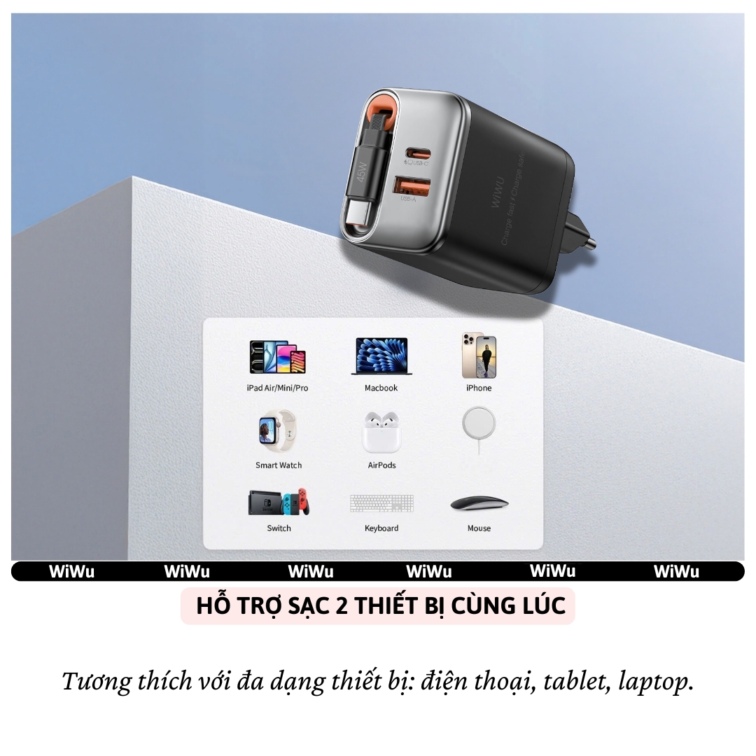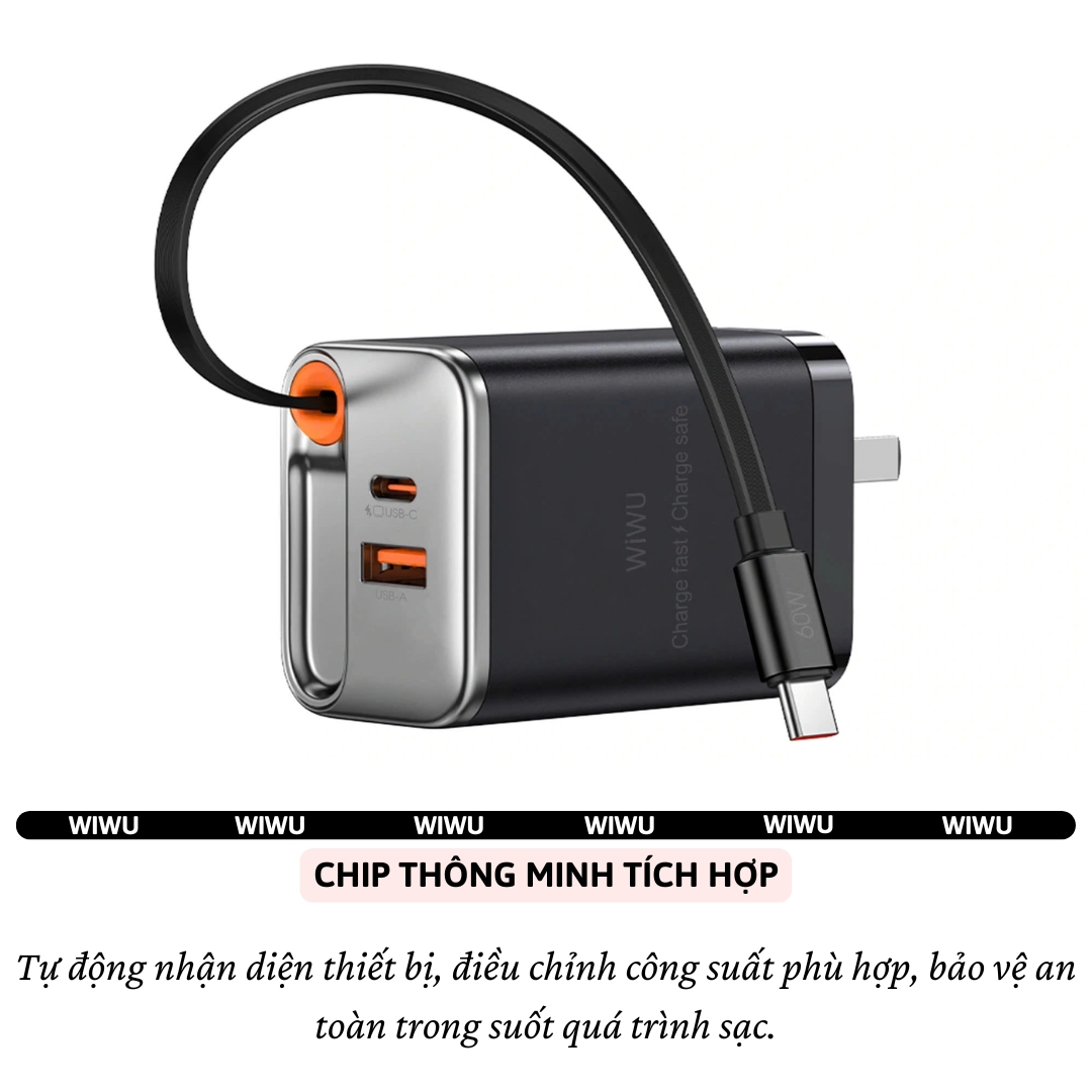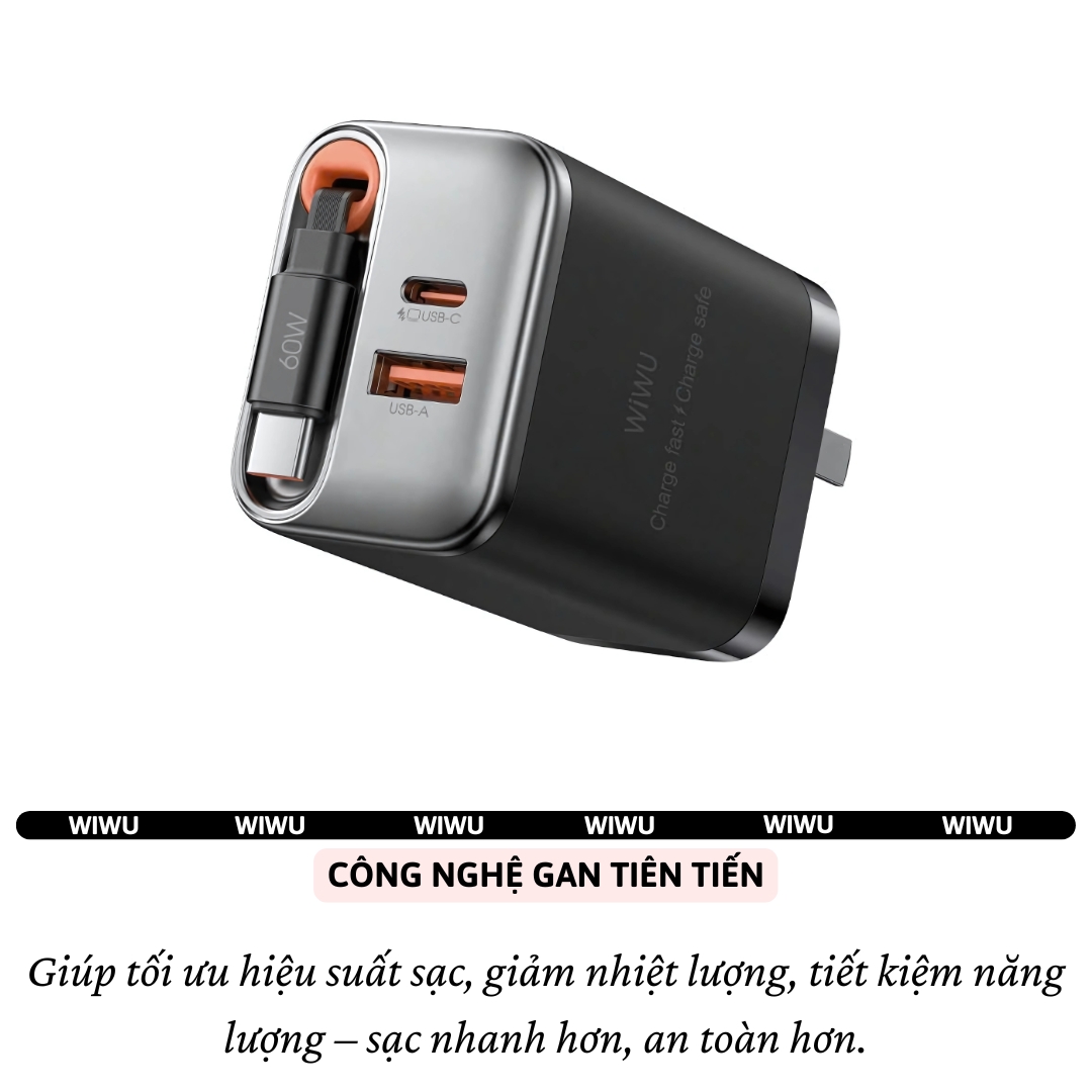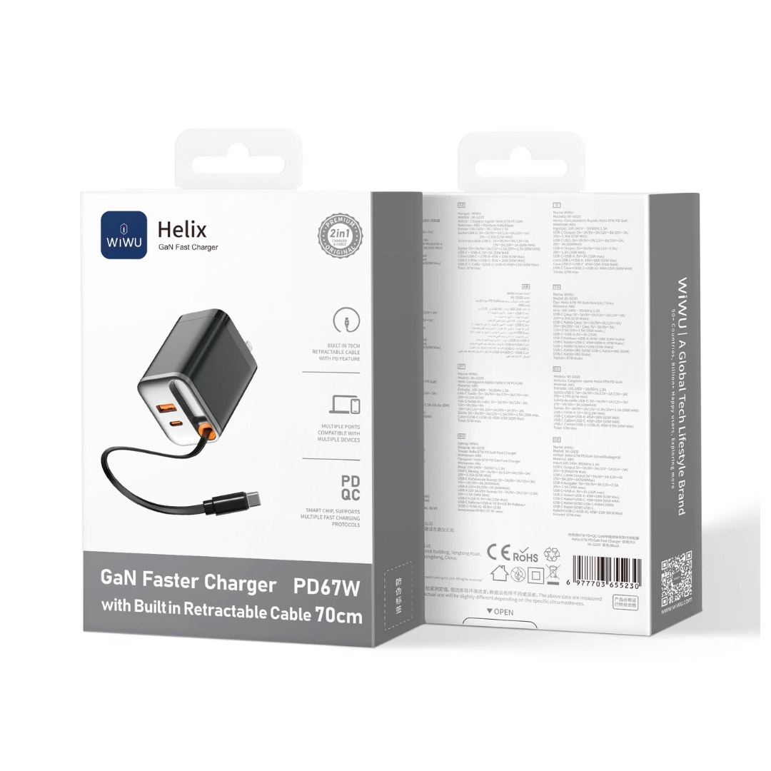 | Model | Adapter cóc củ sạc nhanh 67W PD USB C + USB-A 3.0 kèm dây sạc Type-C PPS chống cháy hiệu WIWU Helix |
