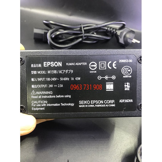 Thông số kỹ thuật trên adapter nguồn 24v 2,5A chính hãng