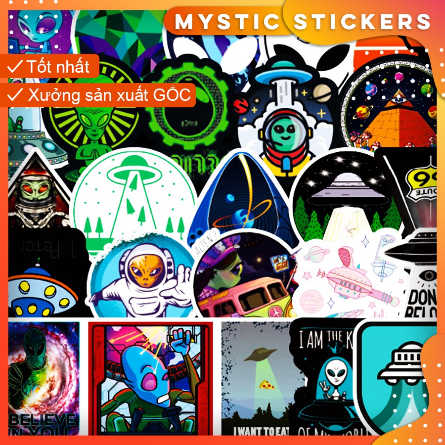Giới thiệu [ALIEN-UFO] 50 Sticker chống nước/ trang trí, set mix ,dán xe laptop mũ bảo hiểm vali...