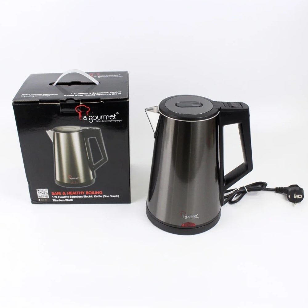 NƯỚC BẠN ĐANG UỐNG CÓ AN TOÀN KHÔNG? Chuyển sang ấm điện La Gourmet để yên tâm hơn nhé ! ------------------------------------------------------------------------- CÁC TÍNH NĂNG ĐẶC BIỆT Thân trong được làm từ Inox 304 liền khối không mối hàn nên rất bền và an toàn cho sức khỏe Phần nắp cũng được làm từ Inox 304, không có bộ phận nhựa tiếp xúc với nước giúp tránh vi nhựa lẫn vào nước Sôi nhanh hơn với công suất lớn Vỏ 2 lớp giúp chống bỏng khi chạm vào Dung tích: 1.7L Công suất: 2150w Vật liệu: Inox 304 18/10 Bảo hành 1 năm ------------------------------------------------------------------------- ĐẶC ĐIỂM SẢN PHẨM : 1. Dễ dàng làm sạch với thiết kế thân bên trong liền mạch: không có điểm hàn hoặc góc khó tiếp cận làm bám cặn 2. Kiểm soát nhiệt độ kép: kiểm soát nhiệt độ chính xác & bảo vệ kép giúp chống cháy nổ 3. Thiết kế tường đôi đặc biệt: An toàn khi chạm vào lớp ngoài Giảm nhiệt độ bề mặt lên đến 50% Giữ nhiệt tốt hơn tới 30% 3. Nắp lò xo một chạm: đóng và mở dễ dàng 4. Nắp mở rộng 90 °: dễ dàng làm sạch và đổ đầy nước 5. Đun sôi nhanh: Nhanh hơn tới 1.5 lần so với ấm đun thông thường ------------------------------------------------------------------------- CÁC TÍNH NĂNG AN TOÀN: 1. Đun sôi tốt cho sức khỏe: Không có bộ phận nhựa nào tiếp xúc với nước sôi Bộ lọc bằng thép không gỉ Nắp trong bằng thép không gỉ 2. Chất liệu cao cấp: Thép không gỉ SUS304 18/10 Không phản ứng với hóa chất & thực phẩm Tính năng an toàn: Bảo vệ chống cháy nổ (Tự động tắt khi nước sôi) ------------------------------------------------------------------------- Thiết kế & bản quyền của : La Gourmet International LLC