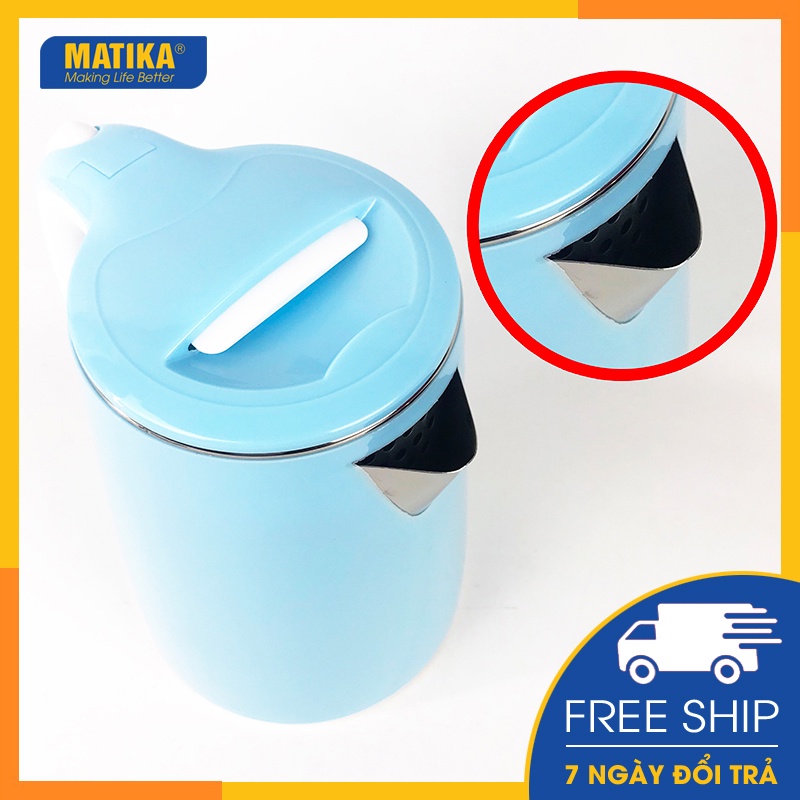 Ấm siêu tốc 💖 POVENA 💖 bình đun siêu tốc 2L-1500W vỏ nhựa xanh da trời PVN-22