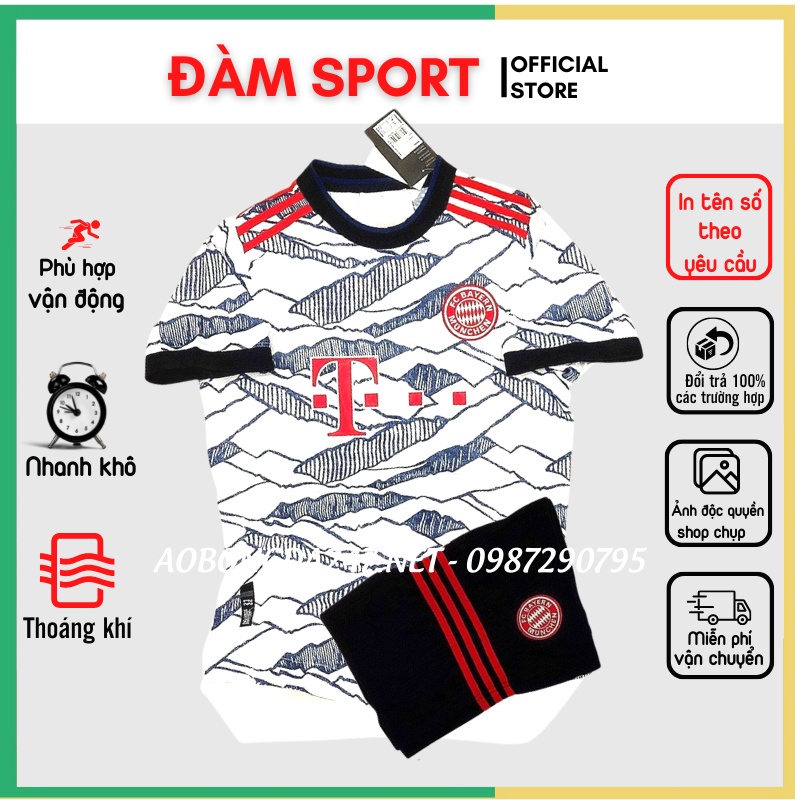 Áo Bóng Đá CLB Bayern Munich Sân Khách 2021 Trắng Mới , Bộ Đồ Đá banh Vải Thái Đẹp