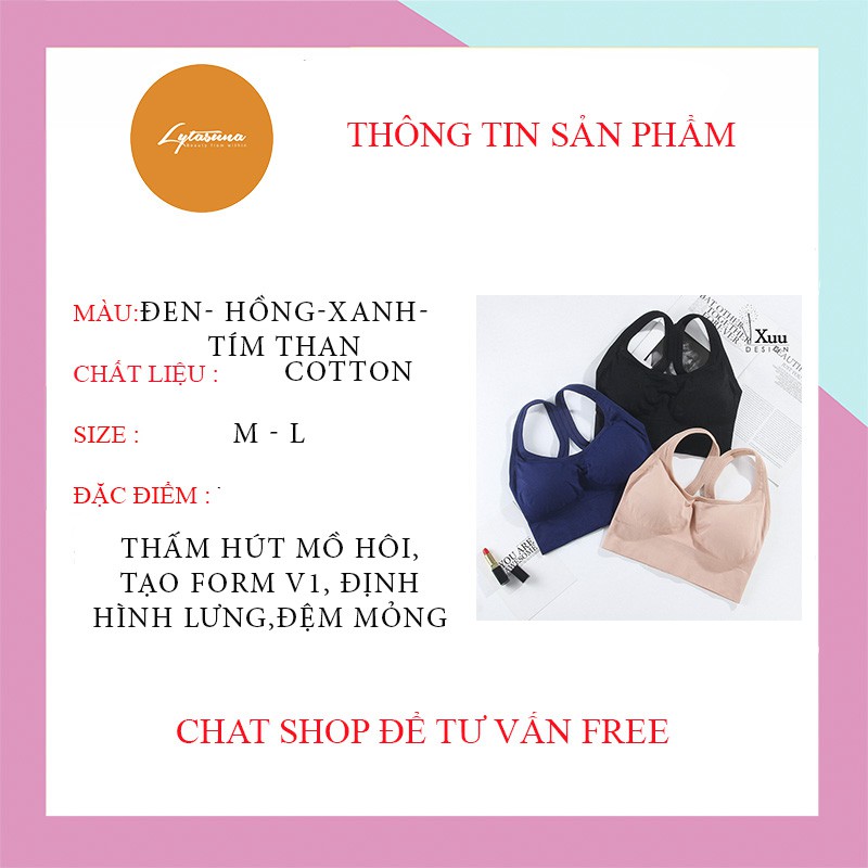 Áo Bra Cotton Cài Sau Chuyên Gym -Yoga Đệm Mỏng, Thấm Hút Tốt AGY11 -Chất liệu : Cotton -Size: M : 40-49kg ,L 50-58kg -Màu sắc: ĐEN- HỒNG- XANH- TÍM THAN - Đặc điểm: ✅ kiểu dáng cài sau cực chất, mẫu siêu hot, mix gì cũng bao đẹp luôn ạ. ✅ Sẵn đệm mút, ôm và nâng. Dáng croptop siêu tôn dáng. ✅Dang ôm tạo form ngực cực chuẩn ✅Thiết kế đai giúp định hình sống lưng chống gù 🛒 Hướng dẫn mua hàng đủ và đúng phân loại: - Khi muốn mua nhiều màu, các nàng hãy cho từng màu + từng size vào giỏ hàng. Khi nào đủ sản phẩm mong muốn thì vào mục giỏ hàng (góc phía trên bên phải màn hình) rồi tiến hành mua hàng. - Đối với quần lót không có phân loại màu, Lyta bán giá sỉ nên xin phép được giao màu ngẫu nhiên cho khách, đảm bảo giao màu khác nhau ạ. Vì vậy, quần lót các nàng chỉ cần chọn số lượng và size (nếu quần có size). Đừng quên Lyta luôn có ưu đãi khi mua từ 5 chiếc quần nhé.