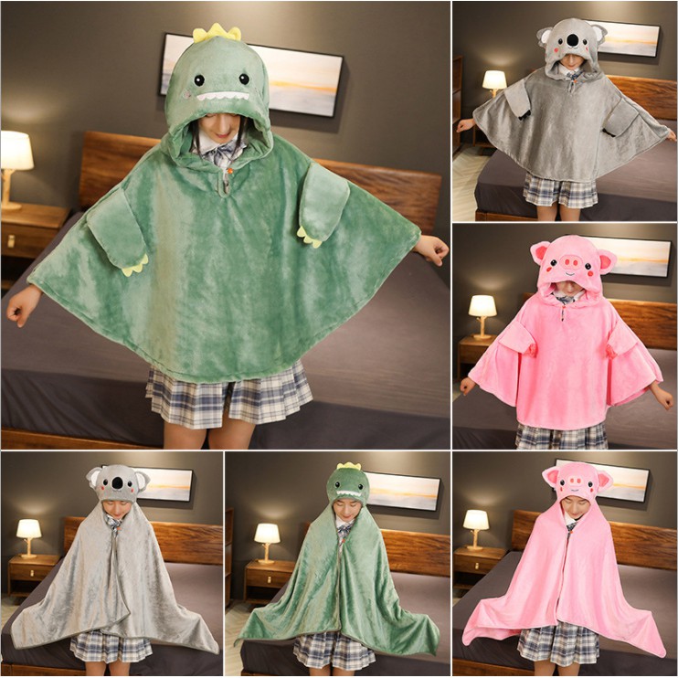 【Life-365】Cartoons Animal Hooded Cloak Home Shawl Nap Blanket Windproof Cloak for Children