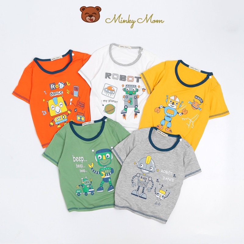 Giới thiệu Áo Cộc Tay Bé Trai Minky Mom Hoạ Tiết Robot Chất Liệu Thun Lạnh Mềm Mại Co Dãn 4 Chiều