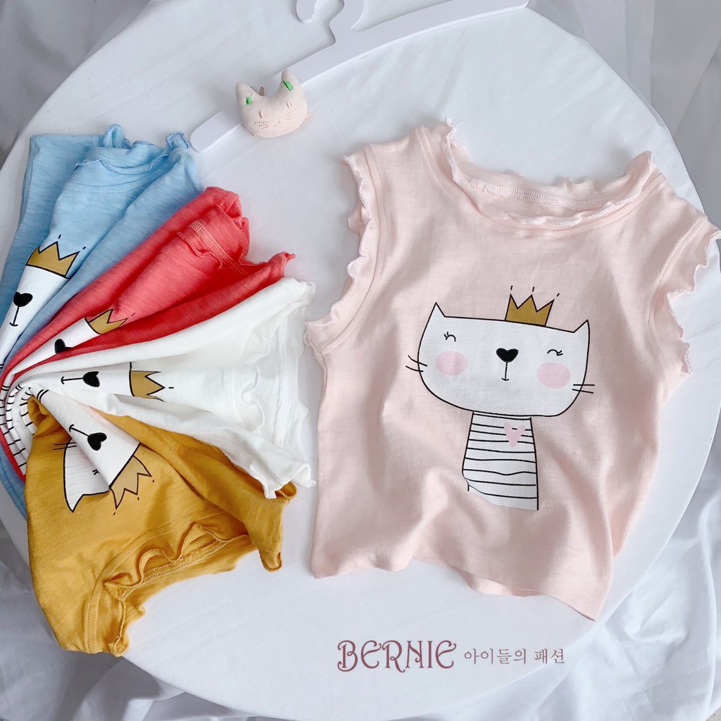 Giới thiệu Áo cotton xước ba lỗ hoạ tiết mèo con dễ thương, áo thun cotton mát lịm