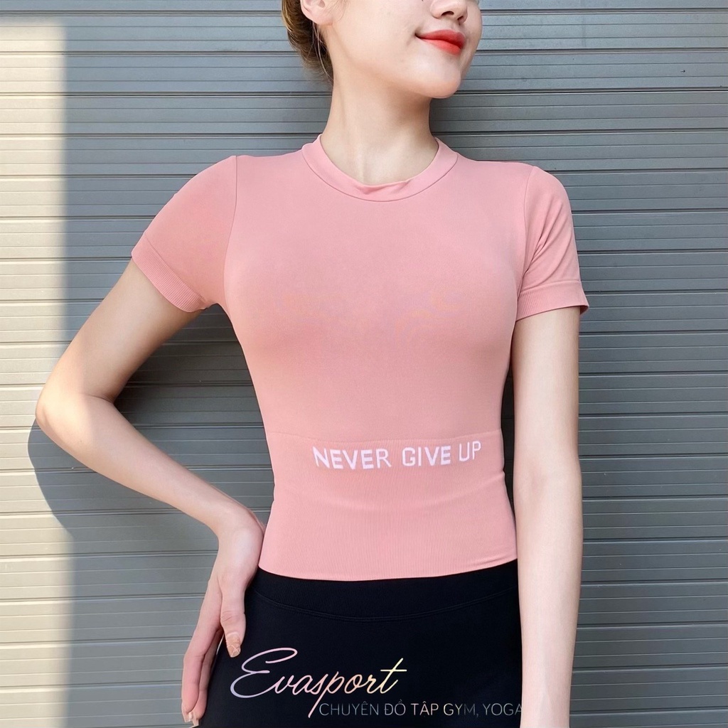 Thể Thao & Dã Ngoại > Thời Trang Thể Thao & Dã Ngoại > Áo Thể Thao || Áo Croptop Tập Gym, Yoga, Aerobic Nữ NEVER GIVE UP Vải Dệt Kim Co Giãn Tốt, Mặc Ôm Dáng, Tôn Vòng 1 Evasport