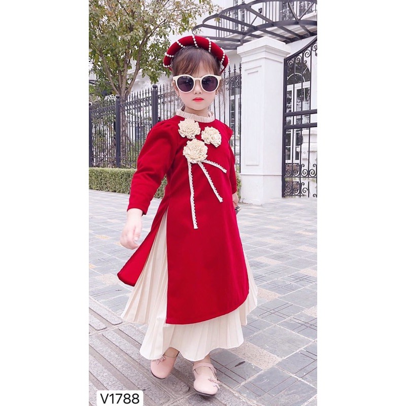 Áo Dài Bé Gái Áo Dài Tết Cho Bé Siêu Cưng 1. ĐẶC ĐIỂM CHUNG - Áo Dài Bé Gái đốn tim các mẹ chưa nào hehe - Dự là nổ inbox đây - Mẫu áo dài cách tân đẹp xuất thần từ kiểu dáng đến chất liệu - Nhiều mẹ hỏi áo dài cho bé nhưng em chưa làm vì thật sự là chưa ưng mã nào cả - Năm nay săn lùng mãi cũng duyệt được em này . 2. CHẤT LIỆU - Mẹ nào thích nhẹ nhàng, sang chảnh thì em Áo Dài Bé Gái này là lựa chọn cực kì hợp lý. - Chất nhung mềm cực sang, tông màu phối quá đẹp. - Mẹ yêu em ý thì chat với shop để e xí phần nhá 3. PHÂN LOẠI HÀNG - Set 3 chi tiết : áo + chân váy+mấn đội đầu cho bé - Màu: Đỏ 4. SIZE Bảng size tham khảo
