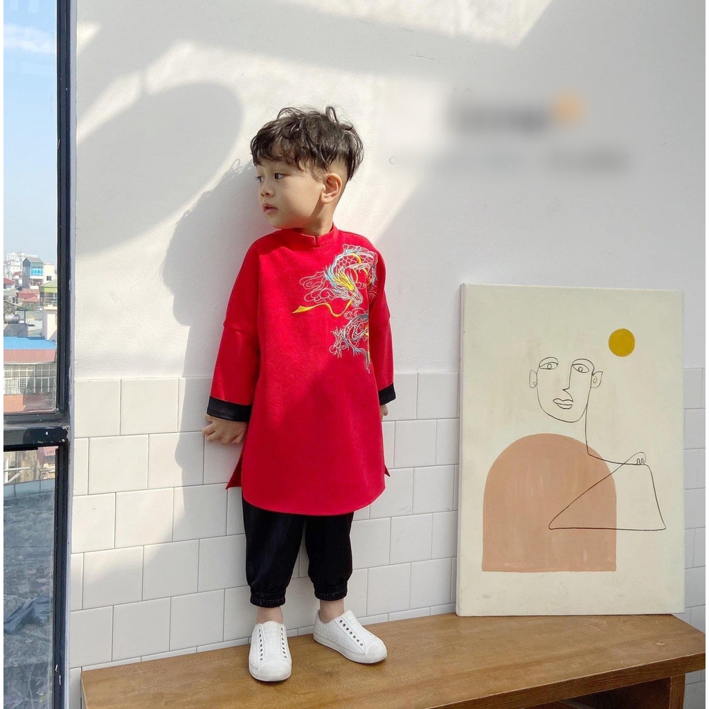 ❣️ Chất liệu nhung chéo mềm mịn kèm quần lụa bóng đen ❣ Điểm nhấn vai thêu rồng bay lạ mắt, đường thêu cẩn thận phối màu tinh tế ❣ Mẹ cho bé mặc vào dịp Lễ Tết, sự kiện hay chụp ảnh lưu niệm đều hết ạ Sản phẩm gồm áo dài không kèm quần)