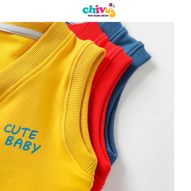 Áo gile cho bé chất nỉ da cá cài cúc hoạ tiết nghộ nghĩnh CHIVU'sKID áo gile bé trai bé gái 1 2 3 4 5 6 tuổi