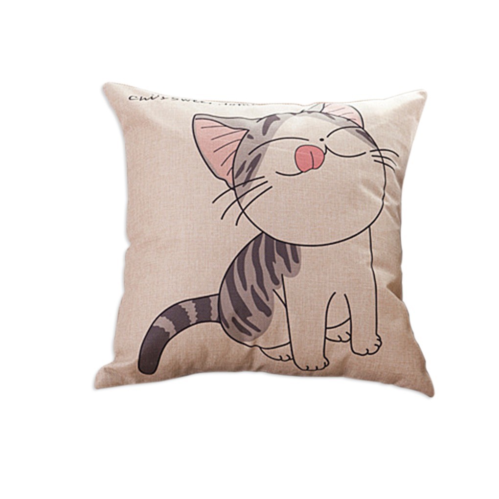 Giới thiệu Áo Gối Vuông, Chất Vải Linen, Hình Mèo, Sống Động