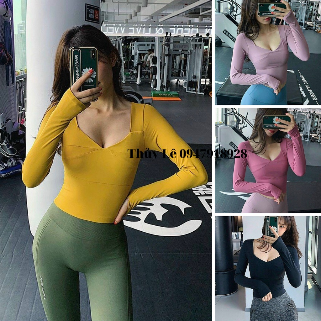 Áo tập thể thao dài tay thun lạnh SIÊU TÔN DÁNG có mút lót ngực sẵn, tôn dáng tuyệt đối cho nữ