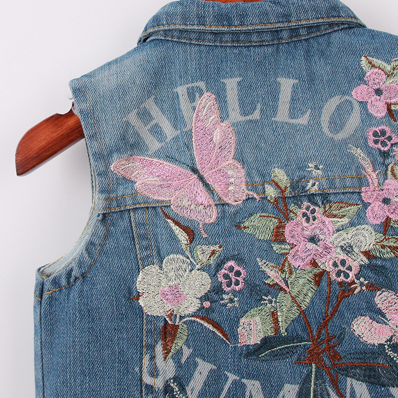 Product:Embroidered denim vest coat