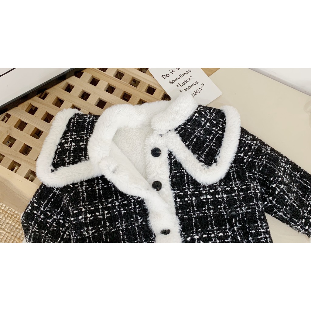 Giới thiệu Áo khoác len phối lông giữ ấm họa tiết ca rô có cổ thời trang xinh xắn cho bé gái