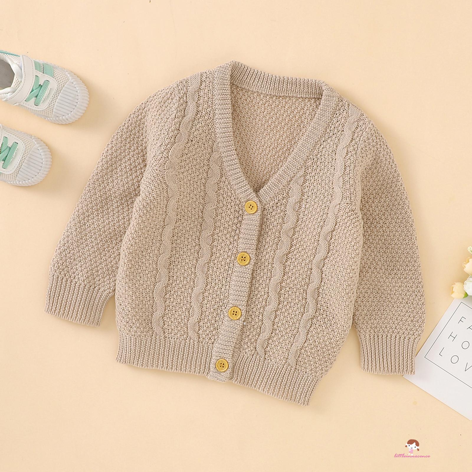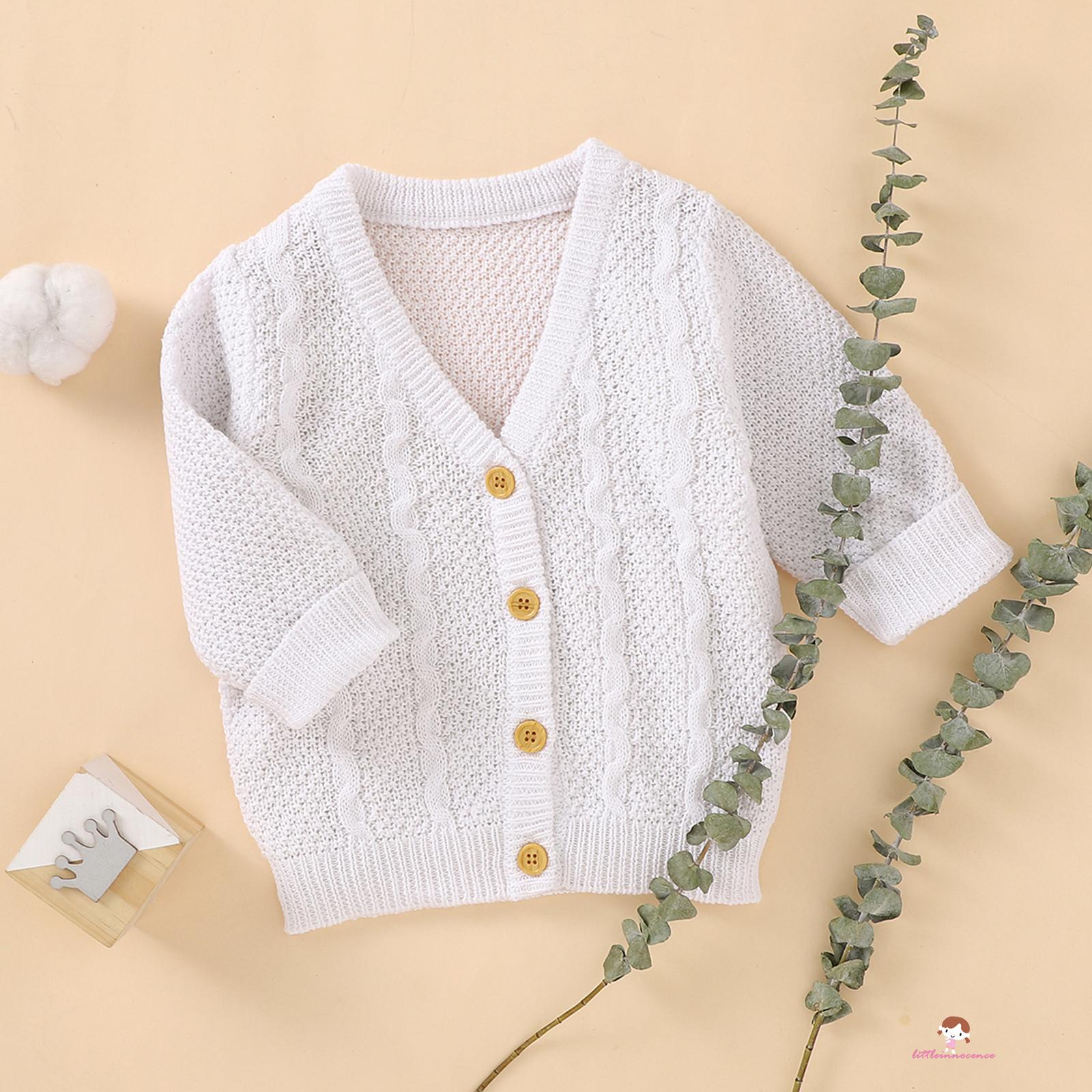 Girl’s Solid Color Knitted cardigan, Long Sleeve V-neck Single Breasted Warm Coat, Lovely Baby Clothes for Spring and Autumn