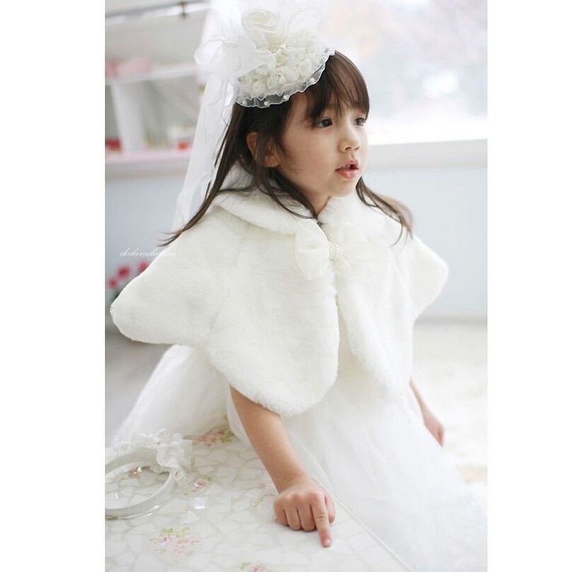 Áo khoác lông giả thiết kế cực sang trọng tinh tế màu trắng tinh khôi dành cho các bé gái