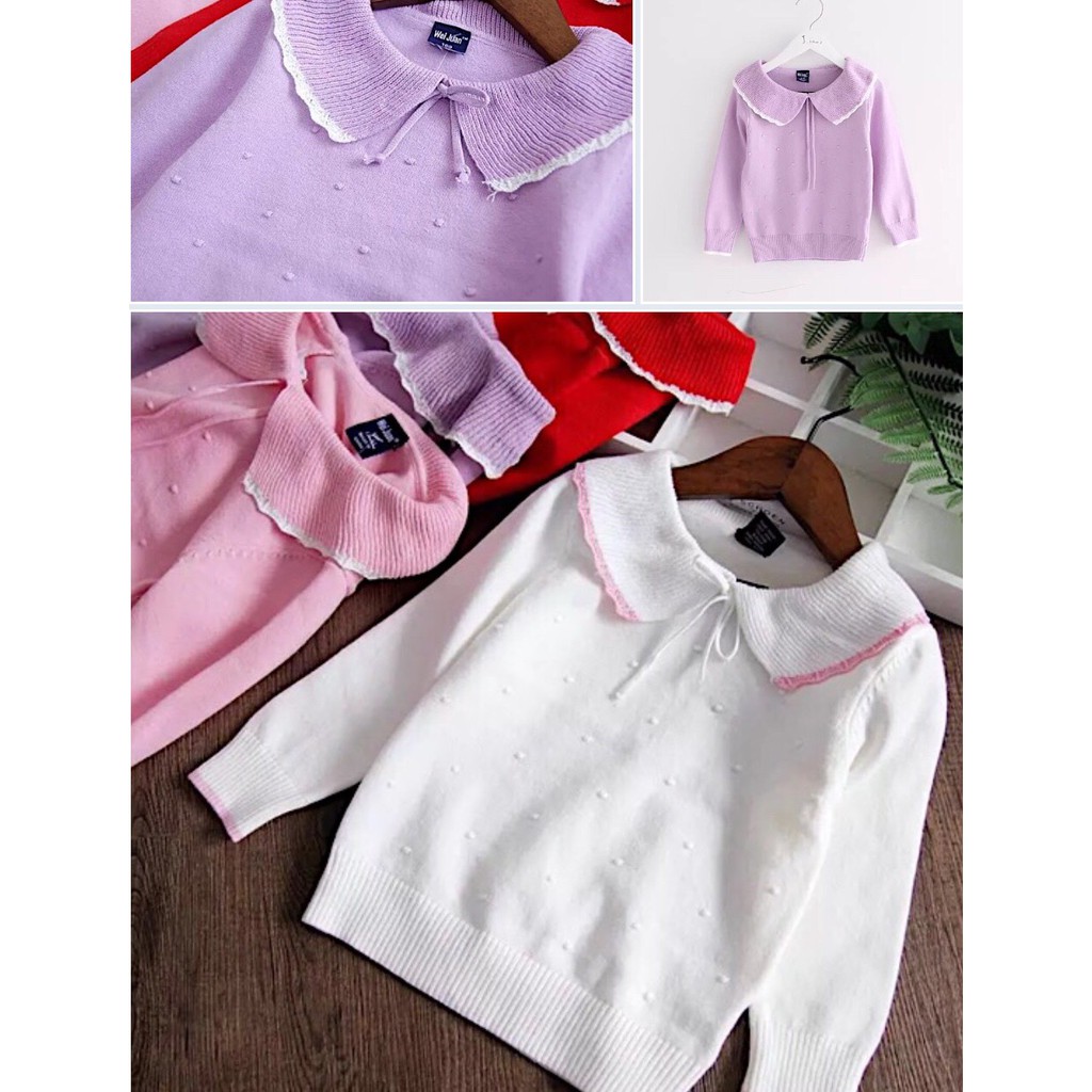 Áo len cổ sen bé gái Wei Juan sz 100-140
