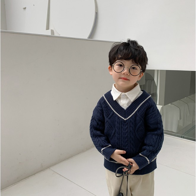 Thời Trang Trẻ Em > Bé trai | 3 tháng-4 tuổi > Áo || [Mã FASHIONGREEN15 hoàn 10% đơn 99k] Áo len cổ viền V cho bé A489