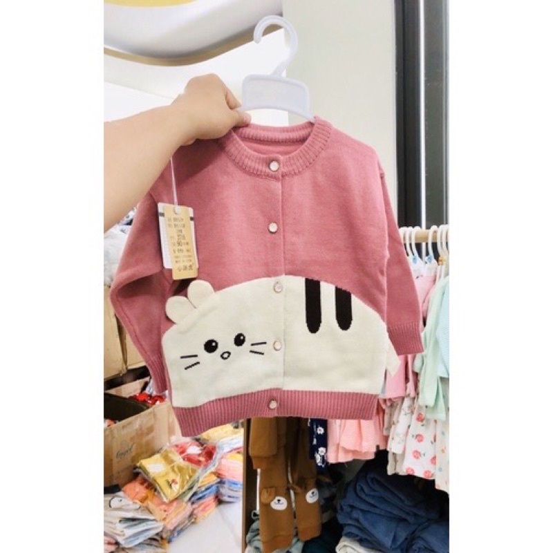 Giới thiệu Áo len Quảng Châu cao cấp hoạ tiết mèo cardigan dài tay cài cúc có bé gái